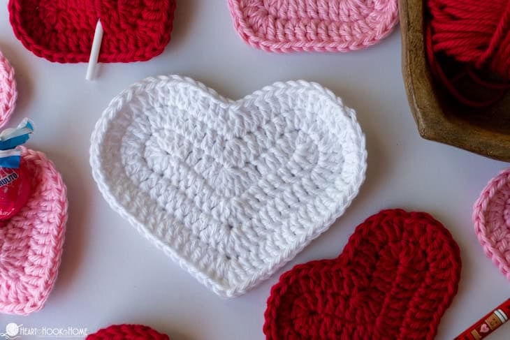 A heart-shaped crochet bunting would be super cute hanging in a classroom or across the mantel or doorway of your home.