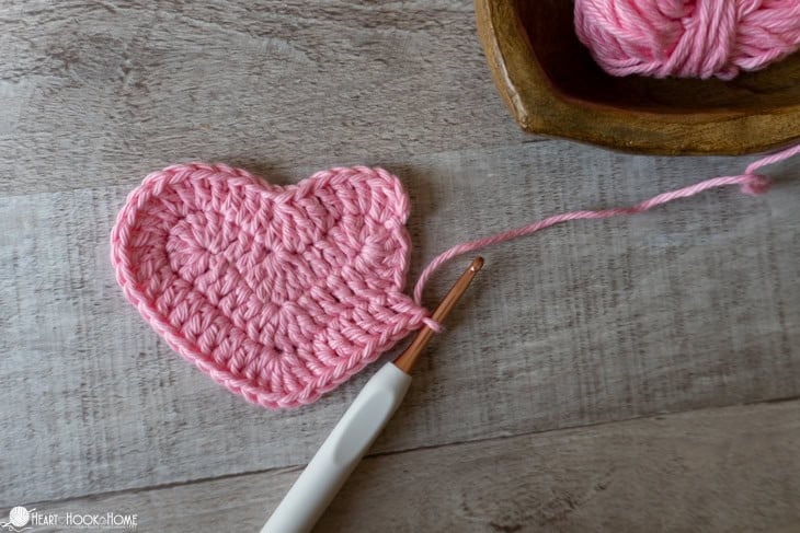If you want to make a slightly larger heart, you could start with a few more chains… the concept is the same!