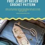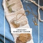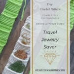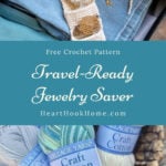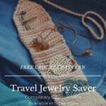 I don’t know about you, but I love to travel. I pack light (typically use a carry-on only, no matter where I’m going) and I’ve tried various things to keep my necklaces from tangling in my suitcase. Instead of separating necklaces out throughout my luggage so they’re not touching or spending a bunch of time untangling them when we arrive at our destination, I created a free crochet pattern for a jewelry saver for luggage. Grab your hook and let’s make one!