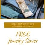 Don’t you hate when you pack jewelry in your suitcase, and the chains and necklaces get all tangled? Nothing worse than getting dressed for the first night out in your destination and having to stop to unpick your accessories before you can hit the town. Find any ol’ knob or hook in the hotel room from which to hang your saver using the chain we use as a tie closure. Brilliant!