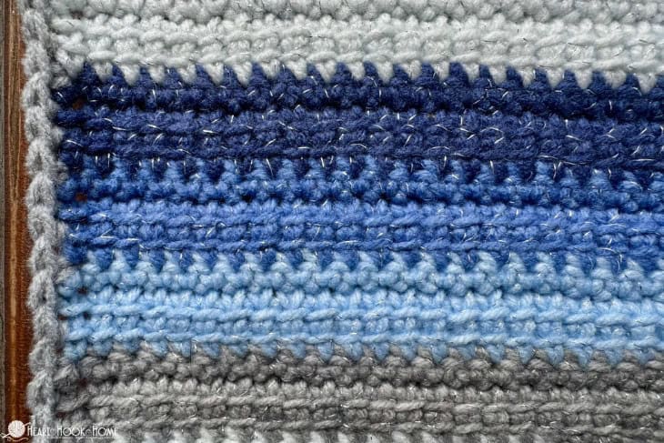 For all squares in this blanket we are using the I/5.5mm hook. If you need to adjust the width of this square to be just shy of 12″, add or remove from the beginning chain in ANY multiple of stitches.