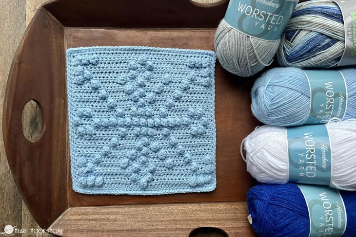 This one is a NEW stitch to Heart Hook Home! Head on over and watch the full tutorial if needed. For this square I used about 180 yards.