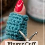 Do you ever sit for long periods of time crocheting, only to realize that your index finger gets raw and sore? The top of your finger gets tender, almost a rug burn, as a result of the yarn running in the same path over and over and over again? I get a red track on mine, and the coarser the yarn the more annoying it gets. Make a finger cuff that doubles as a yarn guide!