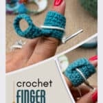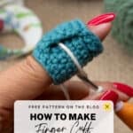 Slip the circle over the tip of your finger to keep the yarn in place while you’re crocheting. As with most crochet patterns, this is customizable to your own finger. If you need more space, start with an extra chain or two. If your fingers are on the smaller side, consider starting with a chain fewer.