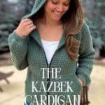The Kazbek Cardigan is a beautiful, open-front hooded cardigan pattern that is worked top-down and has an optional zipper closure. This is a size inclusive, super comfortable crochet pattern that is great for running errands in style or a night around the fire pit.